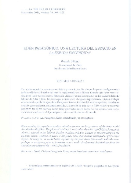 Edén patagónico, una lectura del espacio en La espada encendida [artículo] Brensa Müller.