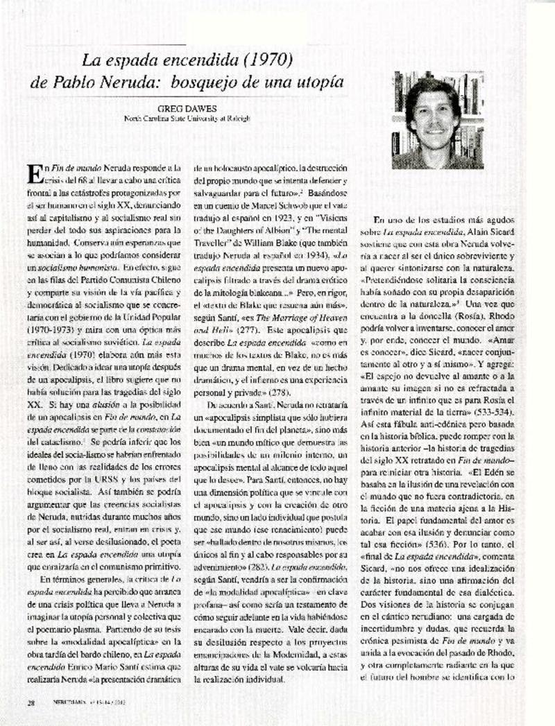 La espada encendida (1970) de Pablo Neruda: bosquejo de una utopía [artículo] Greg Dawes