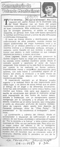 Comentario de Yolanda Montecinos [artículo] Yolanda Montecinos.