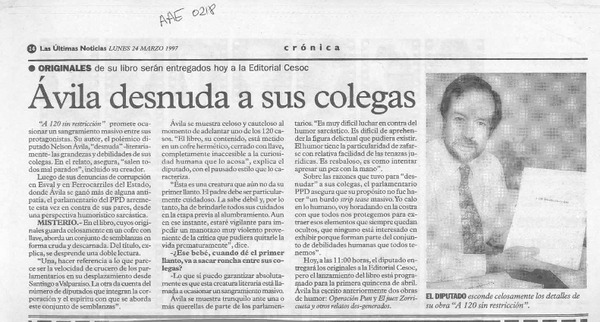 Diputado Avila palanquea a sus colegas en libro muy sabrosón. [artículo]