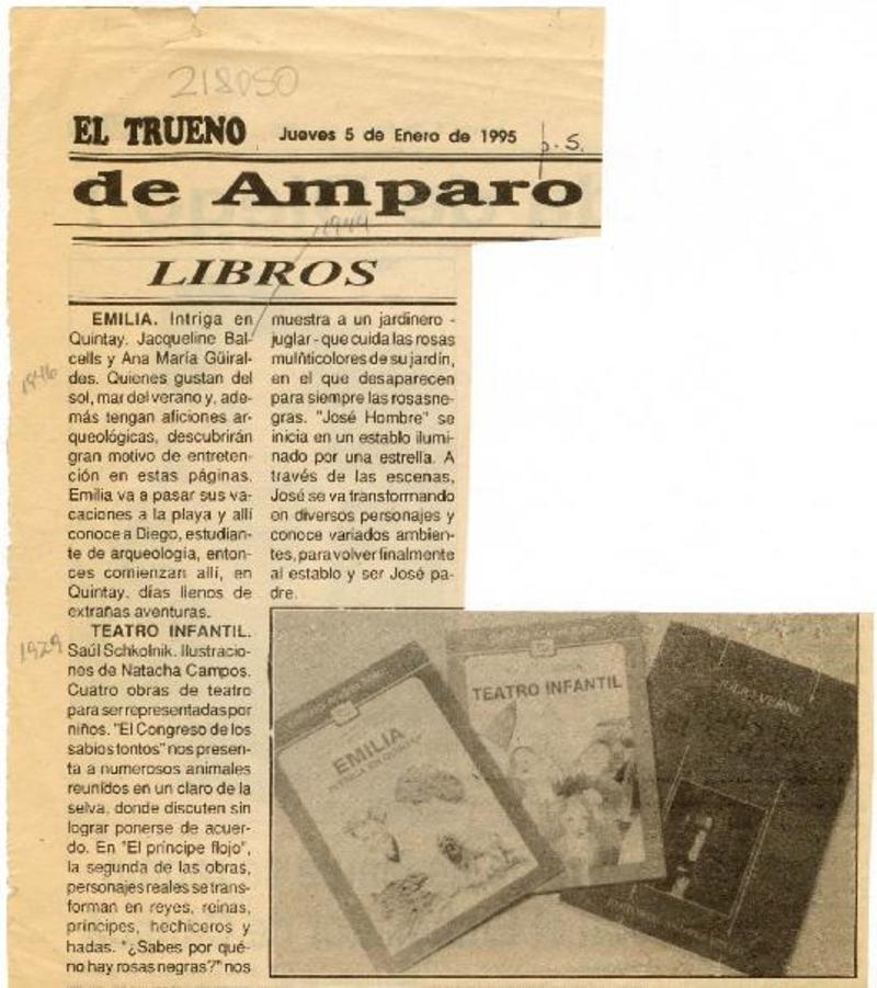 Autoras chilenas - Autores chilenos - Güiraldes, Ana María - Schkolnik, Saúl - Balcells, Jacqueline - Emilia, intriga en Quintay - Teatro infantil
