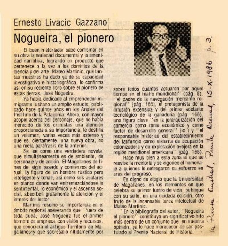 Nogueira, el pionero [artículo] Ernesto Livacic Gazzano.