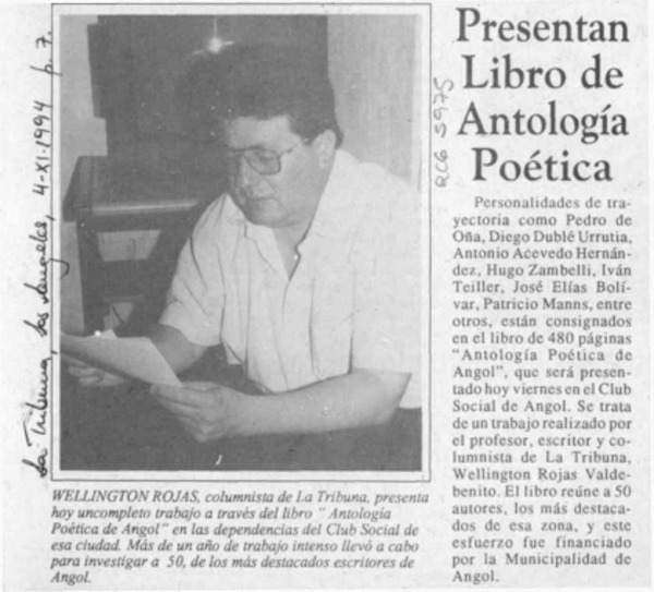 Donan ejemplar de "Antología poética de Angol" [artículo].
