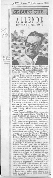 Allende, mi vecino el Presidente [artículo] Nadya Rojo.