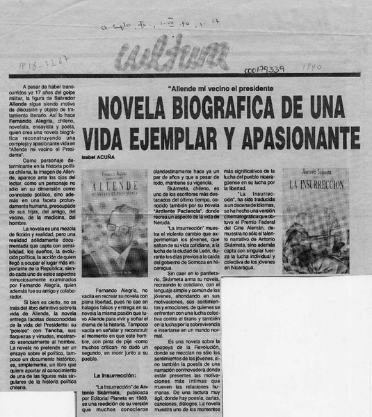La insurrección - Allende, mi vecino el presidente - Skarmeta, Antonio - Alegría, Fernando - Autores chilenos