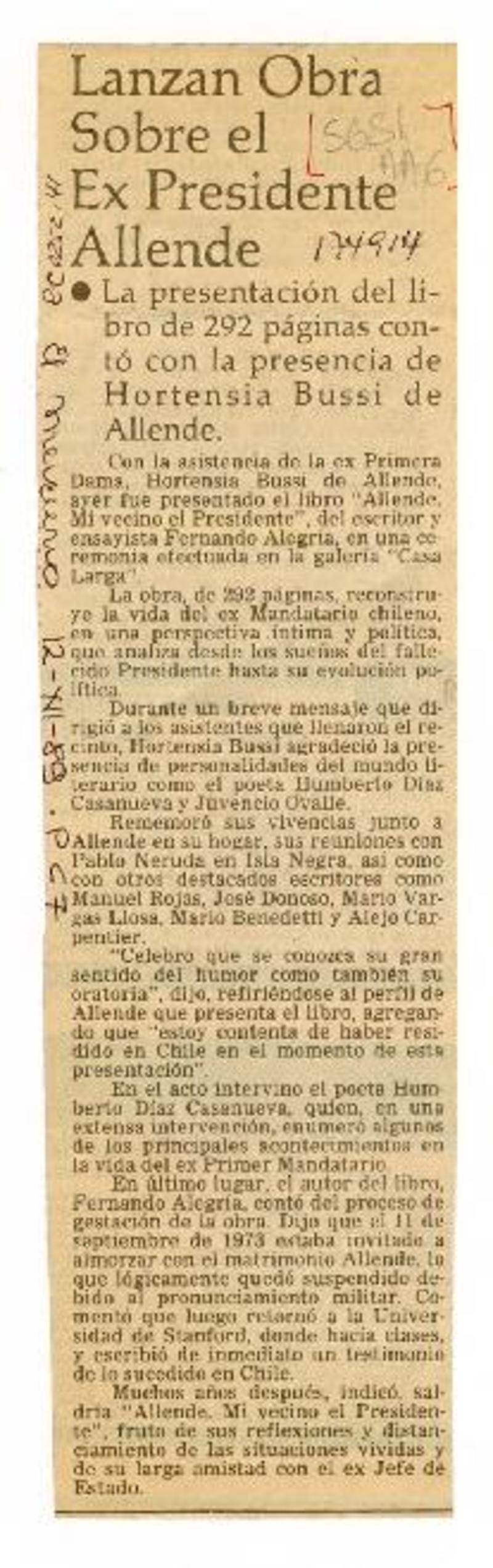 Lanzan obra sobre el ex presidente Allende [artículo].