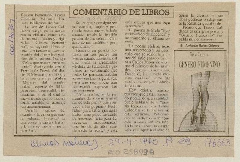 Comentario de libros [artículo] Antonio Rojas Gómez.