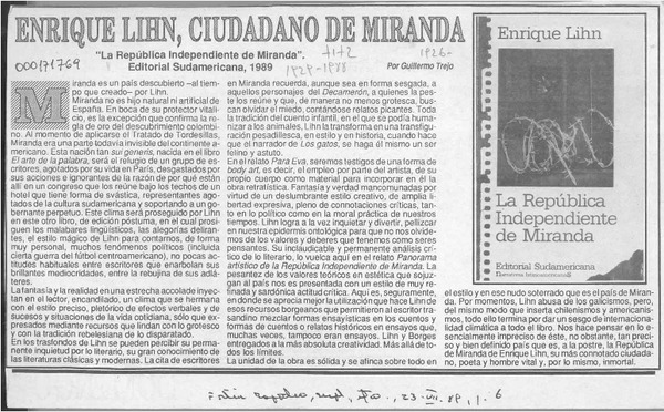 LIHN, ENRIQUE - REPUBLICA INDEPENDIENTE DE MIRANDA, LA