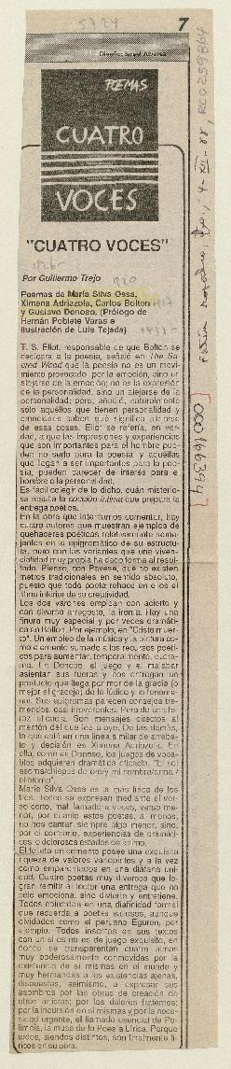 "Cuatro voces" [artículo] Guillermo Trejo.