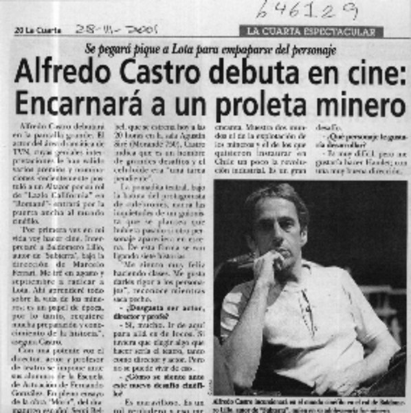 Alfredo Castro debuta en cine, encarnará a un proleta minero [artículo].