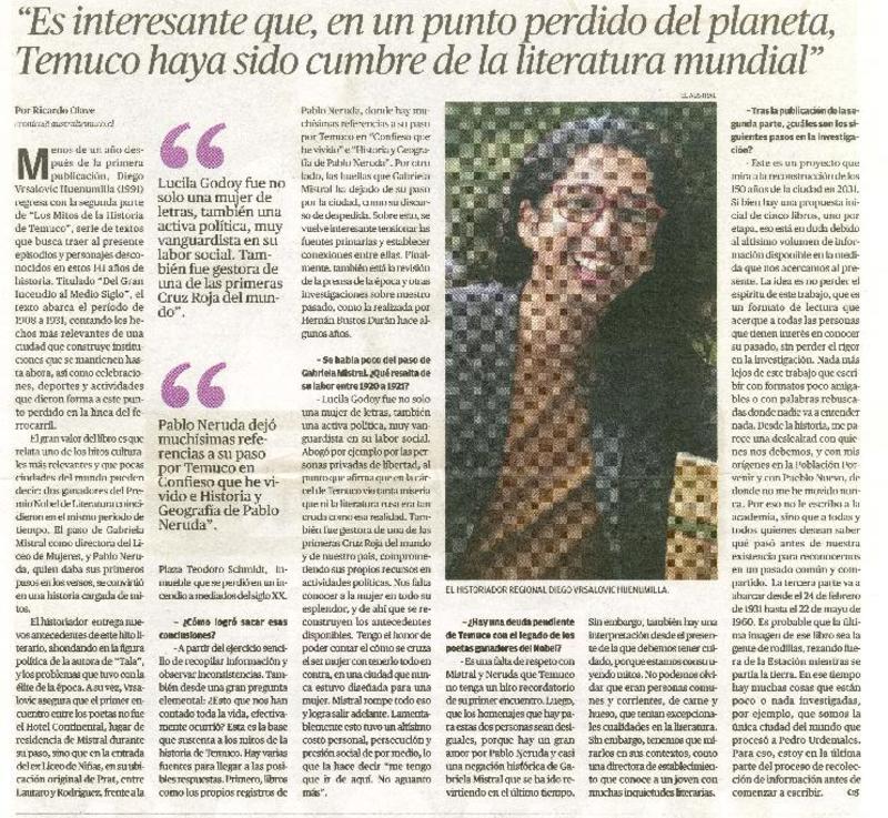 "Es interesante que, en un punto perdido del planeta, Temuco haya sido cumbre de la literatura mundial" [entrevista] [artículo] : Por Ricardo Olave