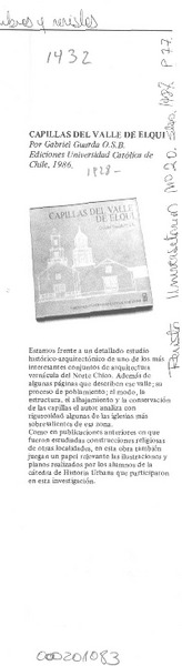 Capillas del Valle de Elqui [artículo] Cecilia Valdés Urrutia.