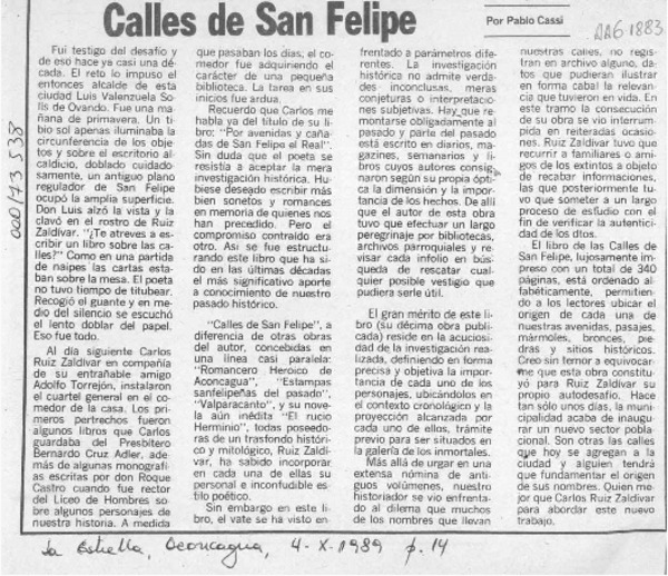 Las calles de San Felipe [artículo] Carlos Ruiz Zaldívar.