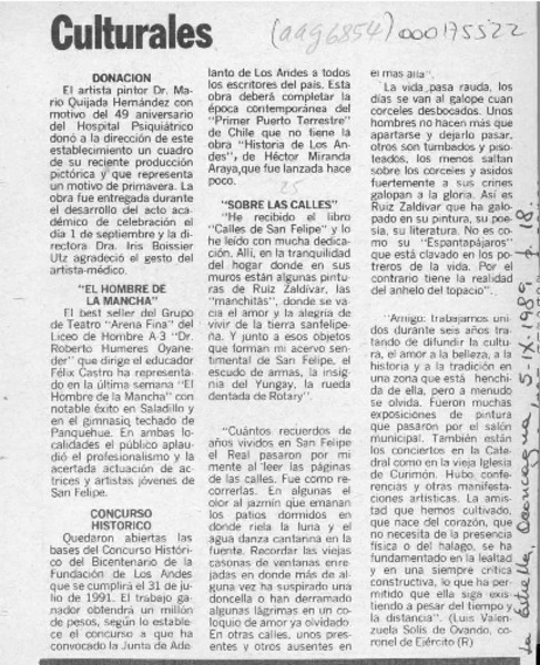 Autores chilenos - Ruíz Zaldívar, Carlos - "Calles de San Felipe"