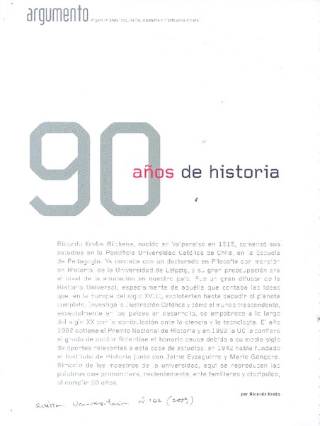 Entrevista a Ricardo Krebs, Premio Nacional de Historia (Chile, 1981) [artículo] Pilar Larroulet, Alejandro San Francisco.
