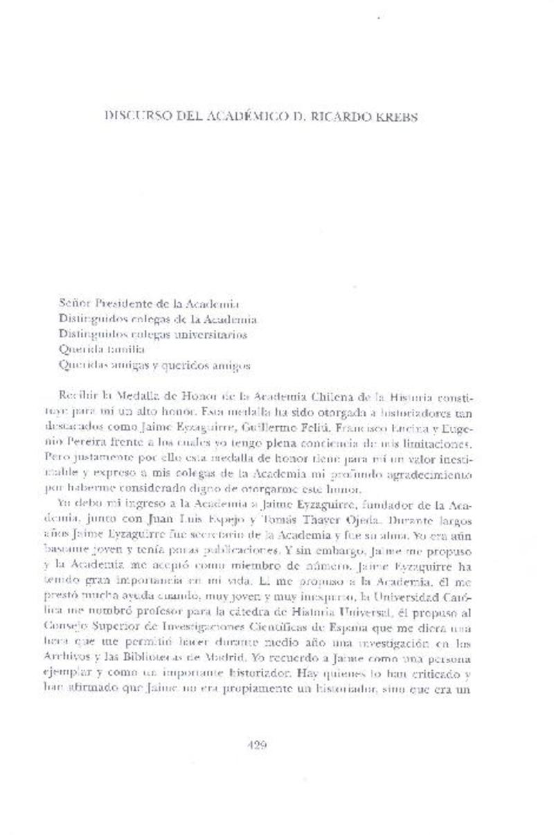 Discurso del académico D. Ricardo Krebs [artículo] Ricardo Krebs.