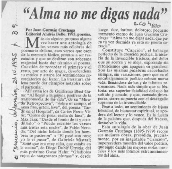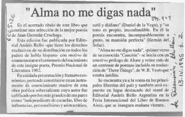 Guzmán Cruchaga, Juan - Alma, no me digas nada