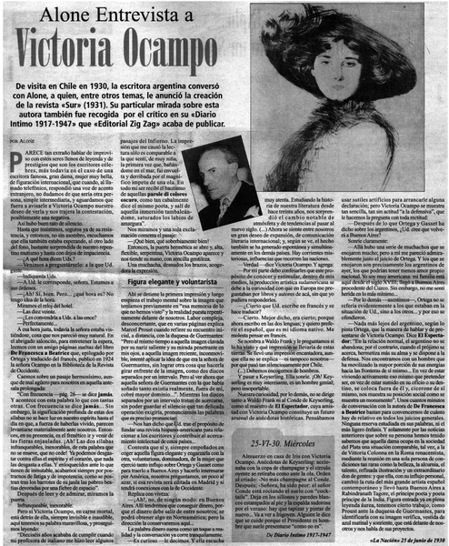 Alone entrevista a Victoria Ocampo [entrevista] [artículo] : Alone.