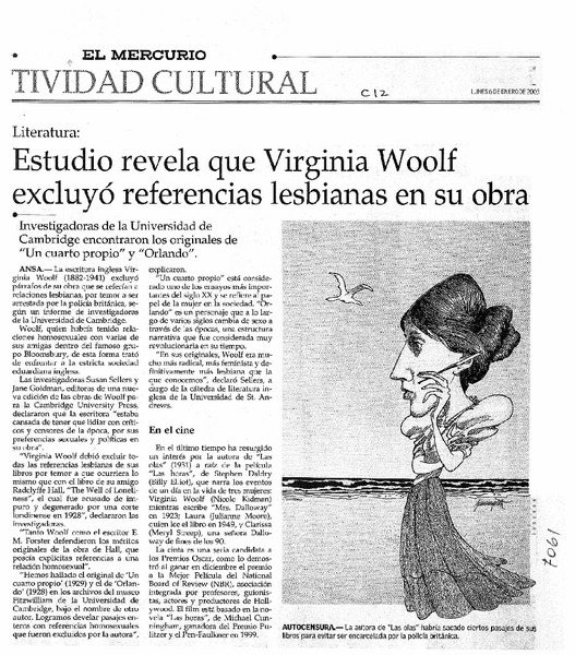 Estudio revela que Virginia Woolf excluyó referencias lesbianas en su obra. [artículo]