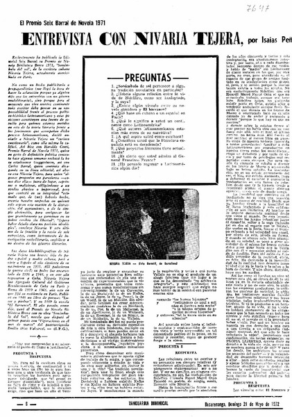 Entrevista con Nivaria Tejera Premio biblioteca Breve 1971 [entrevista] [artículo] : Miguel de Francisco.