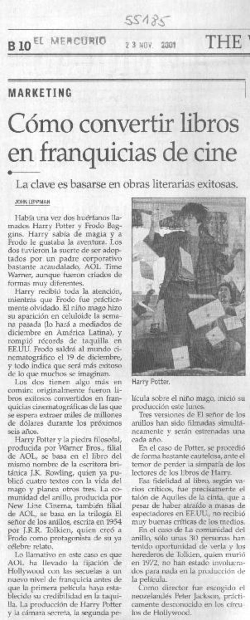 Cómo convertir libros en franquicias de cine la clave es basarse en obras literarias exitosas [artículo] : John Lippman.