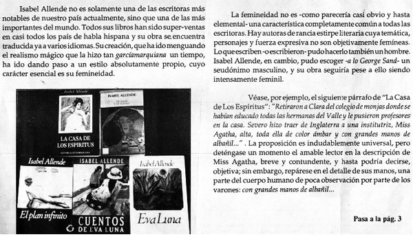 Isabel Allende, un canto a la femineidad [artículo] Carlos Aránguiz Zúñiga.