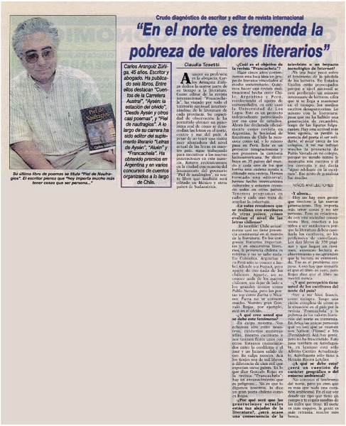 "En el norte es tremenda la pobreza de valores literarios" [artículo] Claudia Tosetti