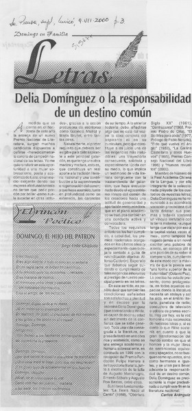 Delia Domínguez o la responsabilidad de un destino común [artículo] Carlos Aránguiz