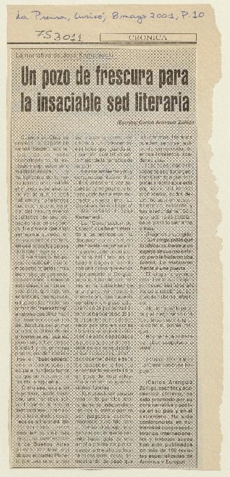 Un pozo de frescura para la insaciable sed literaria [artículo] Carlos Aránguiz Zuñiga.