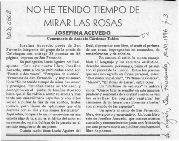 No he tenido tiempo de mirar las rosas [artículo] Antonio Cárdenas Tabies.