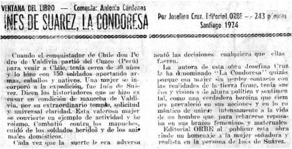 Inés de Suárez, la condoresa : [comentario] [artículo] Antonio Cárdenas Tabies.