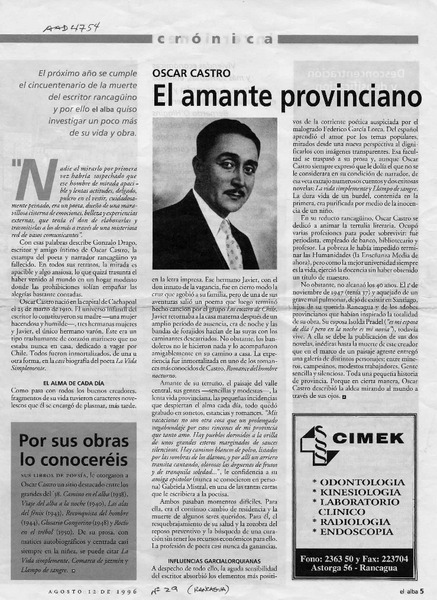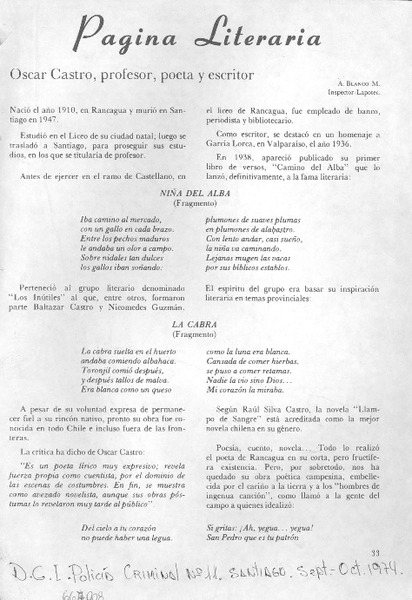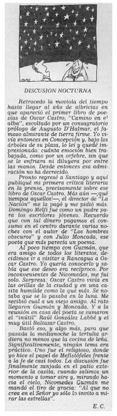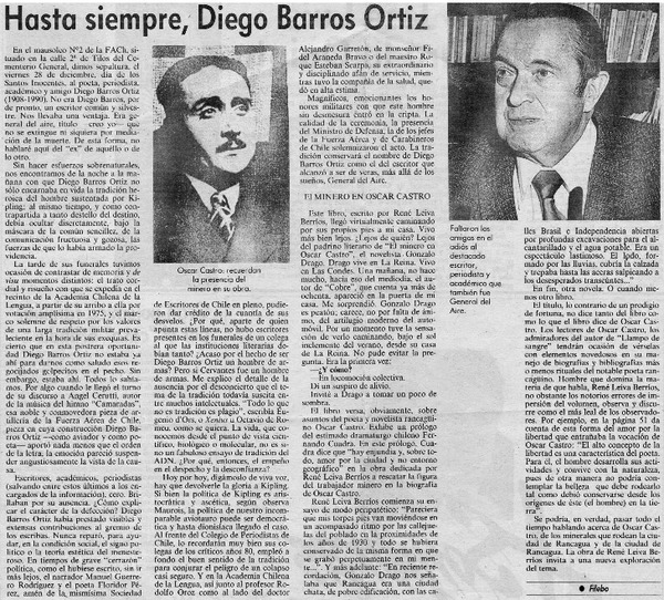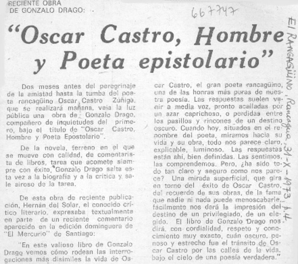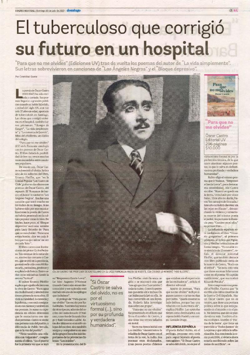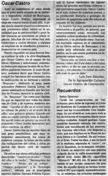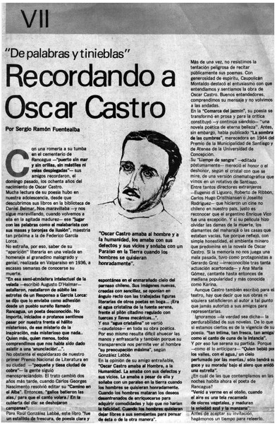 "Óscar Castro aproximación en el recuerdo" [artículo] Edilberto Domarchi.