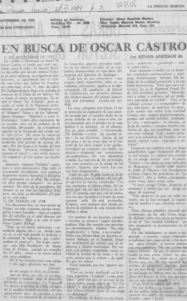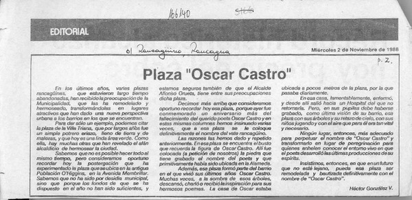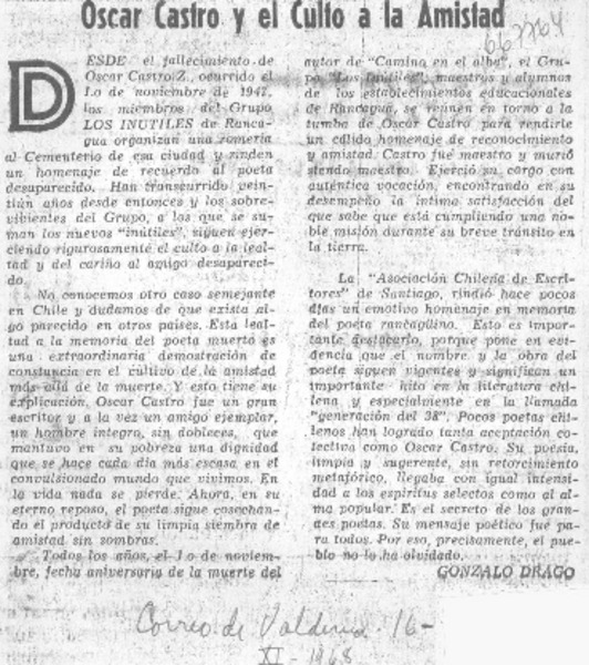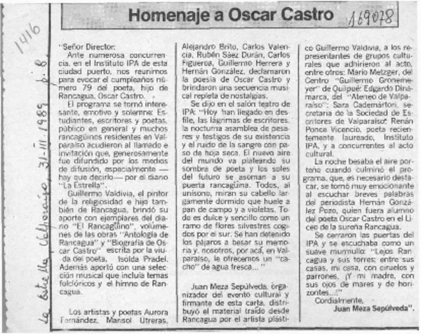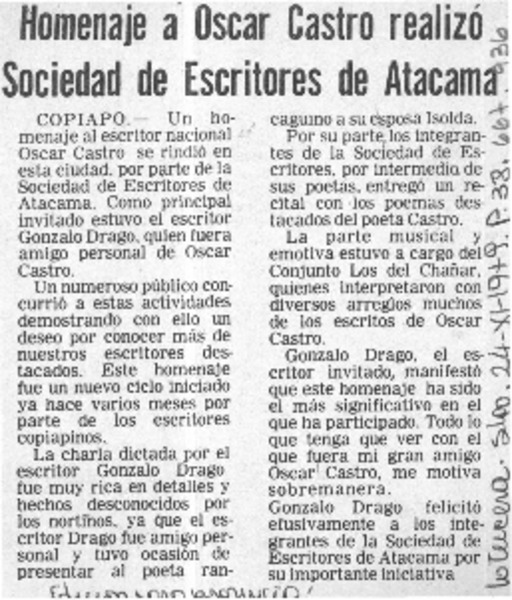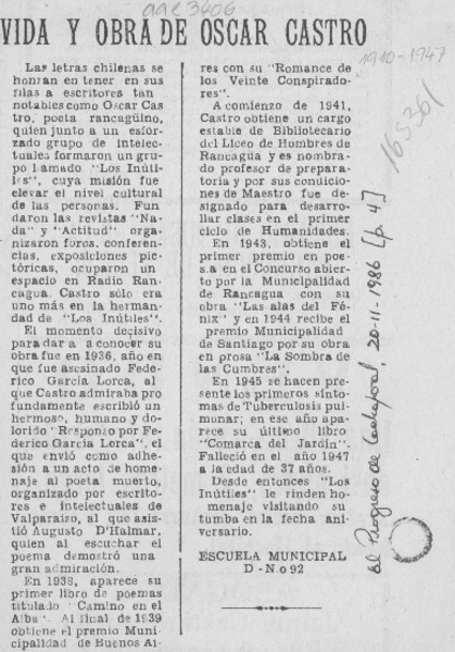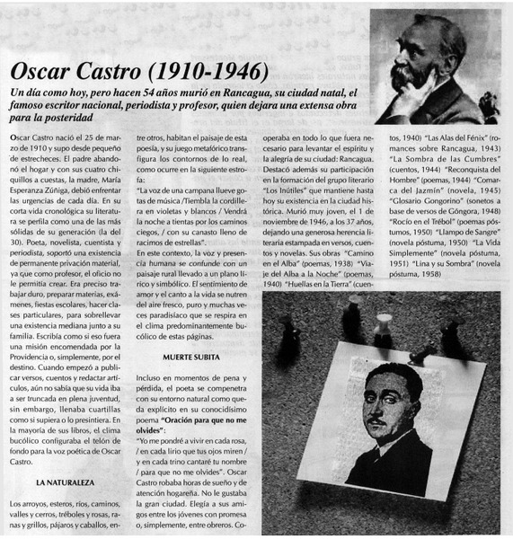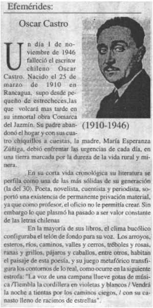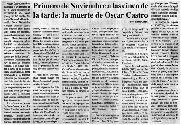 1 de noviembre, Oscar Castro [artículo] Juan Meza Sepúlveda.