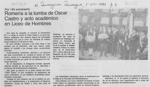 Romería y homenaje al poeta Oscar Castro [artículo].