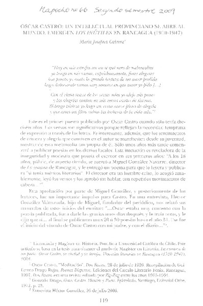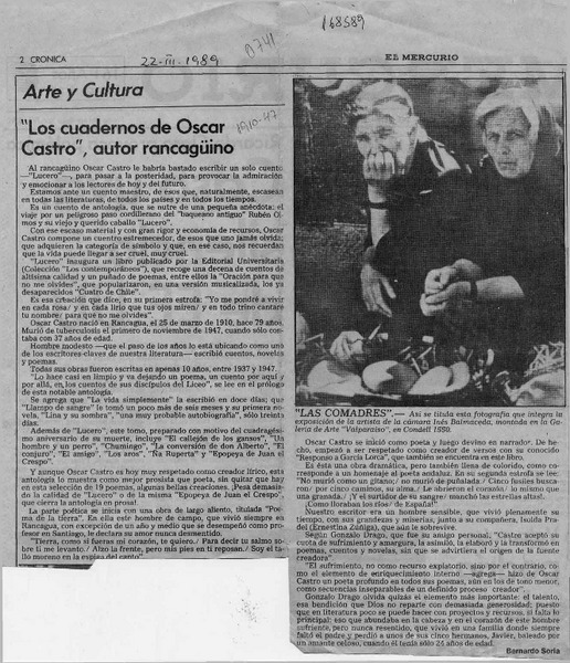 "Los cuadernos de Óscar Castro", autor rancagüino [artículo] Bernardo Soria.