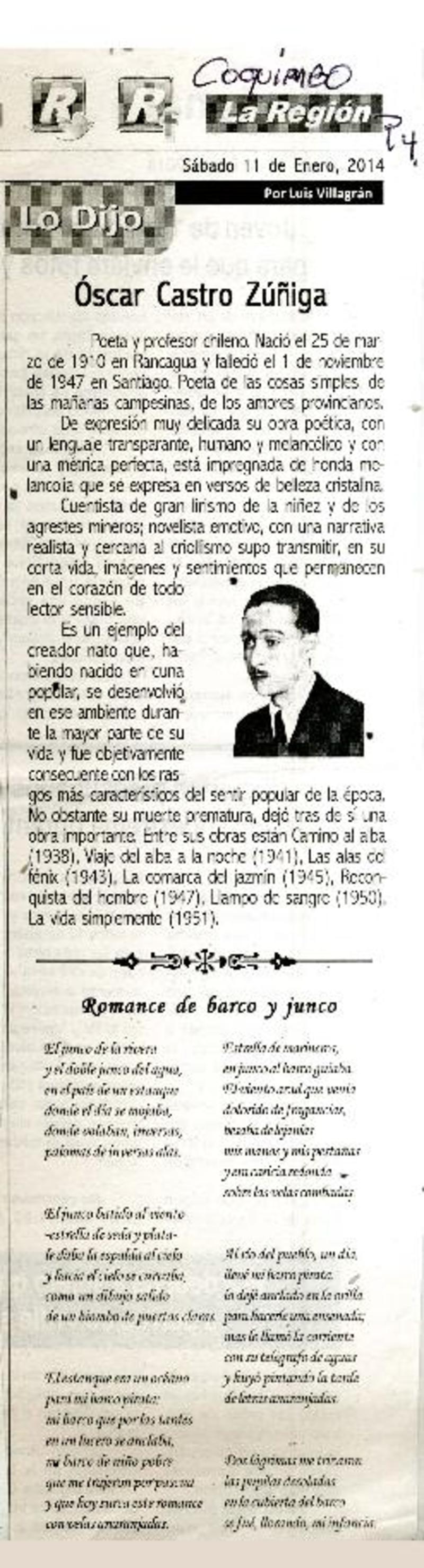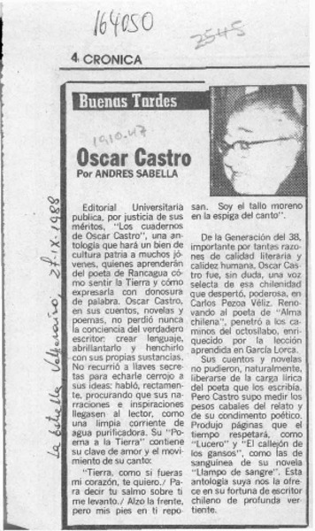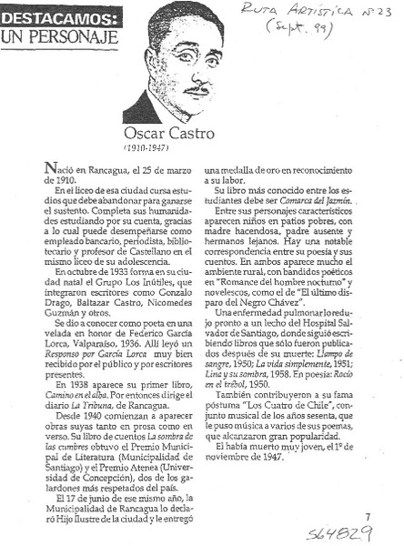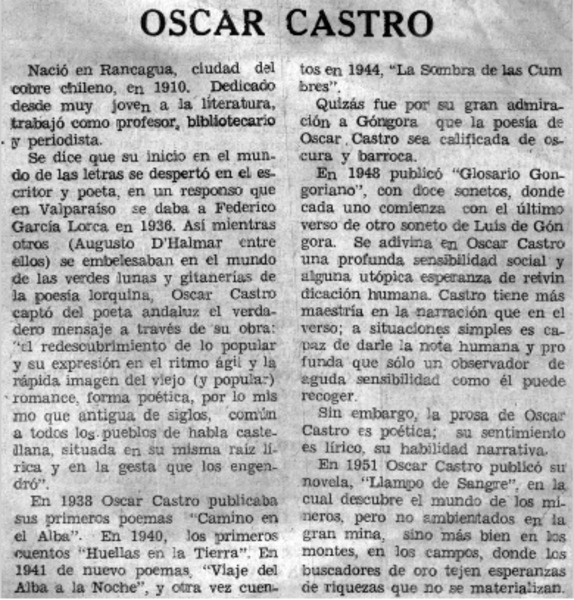 "Oscar Castro" [artículo] Hernán Navarrete Rojas
