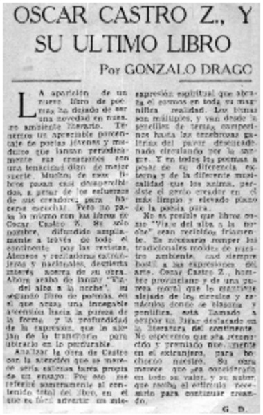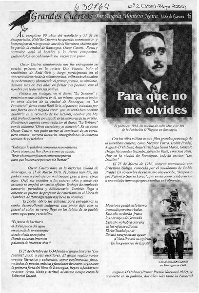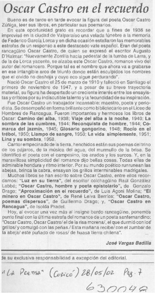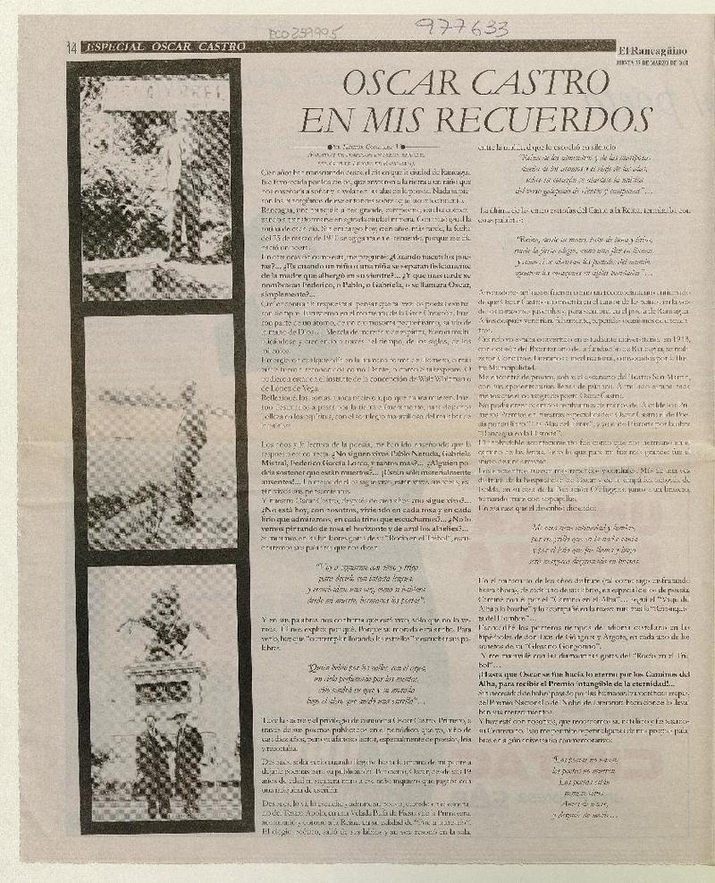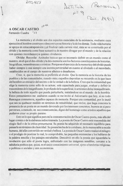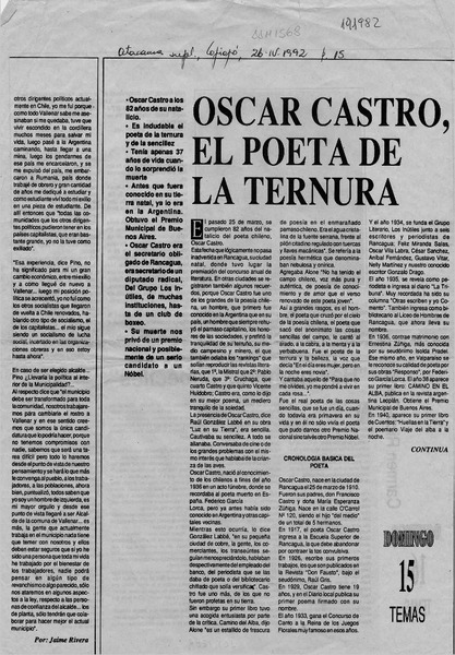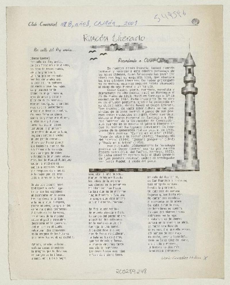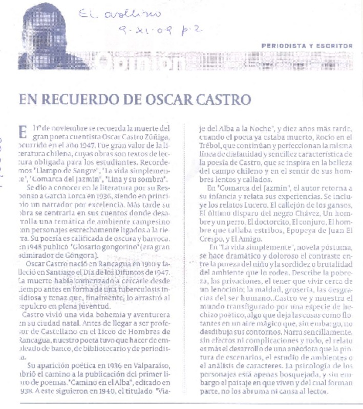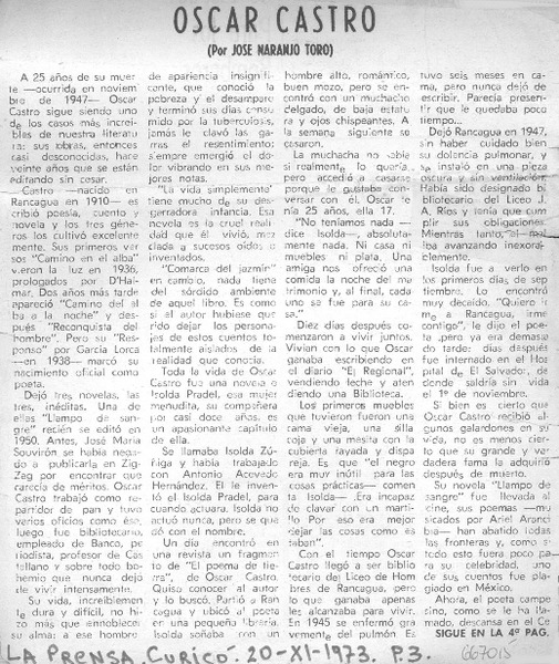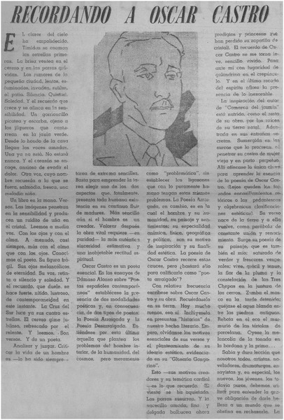 Recuerdo de Oscar Castro [artículo] David Ojeda Leveque.
