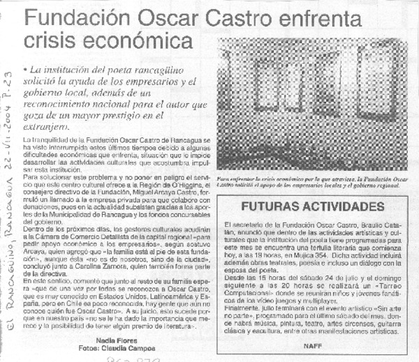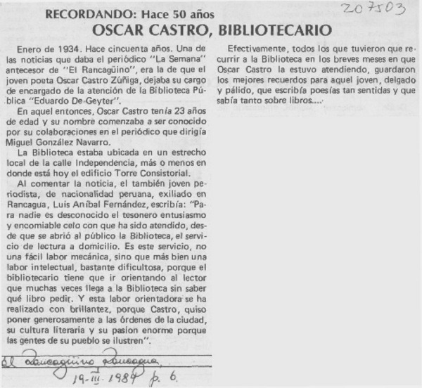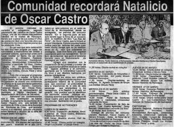 Comunidad recordará natalicio de Oscar Castro [artículo].