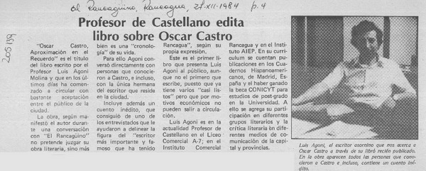 Agoni Molina, Luis - Óscar Castro: aproximación en el recuerdo - Entrevista - Autores chilenos - Castro, Óscar