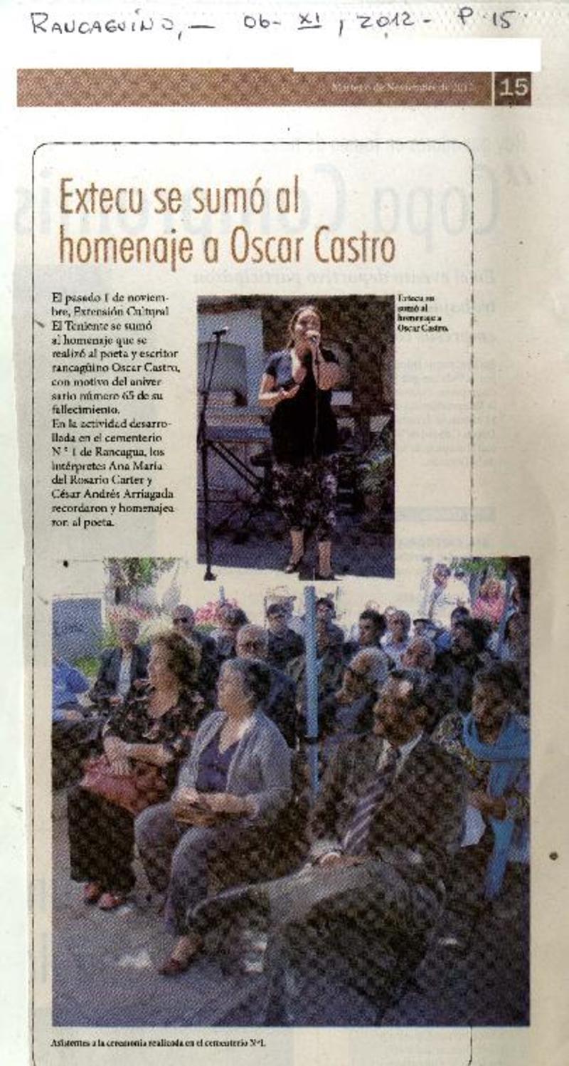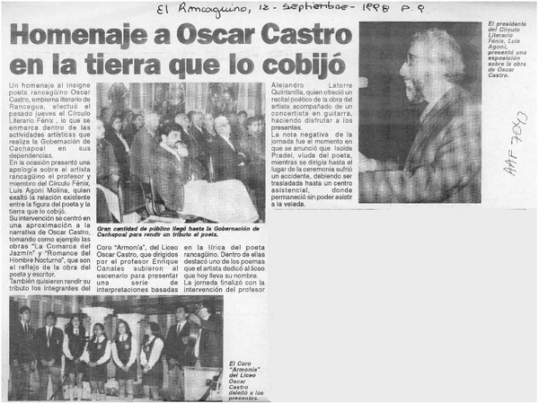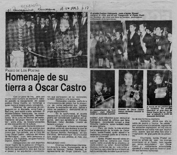 Rinden homenaje a Oscar Castro [artículo] Gisella Abarca.