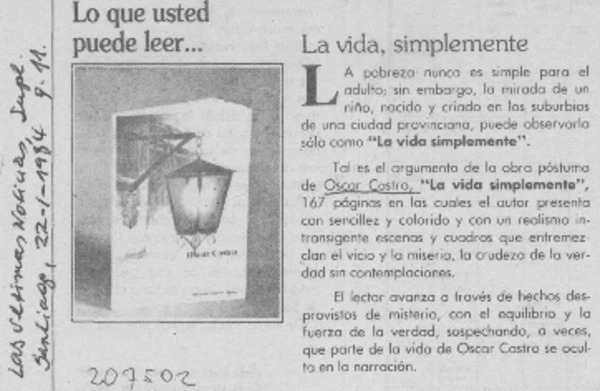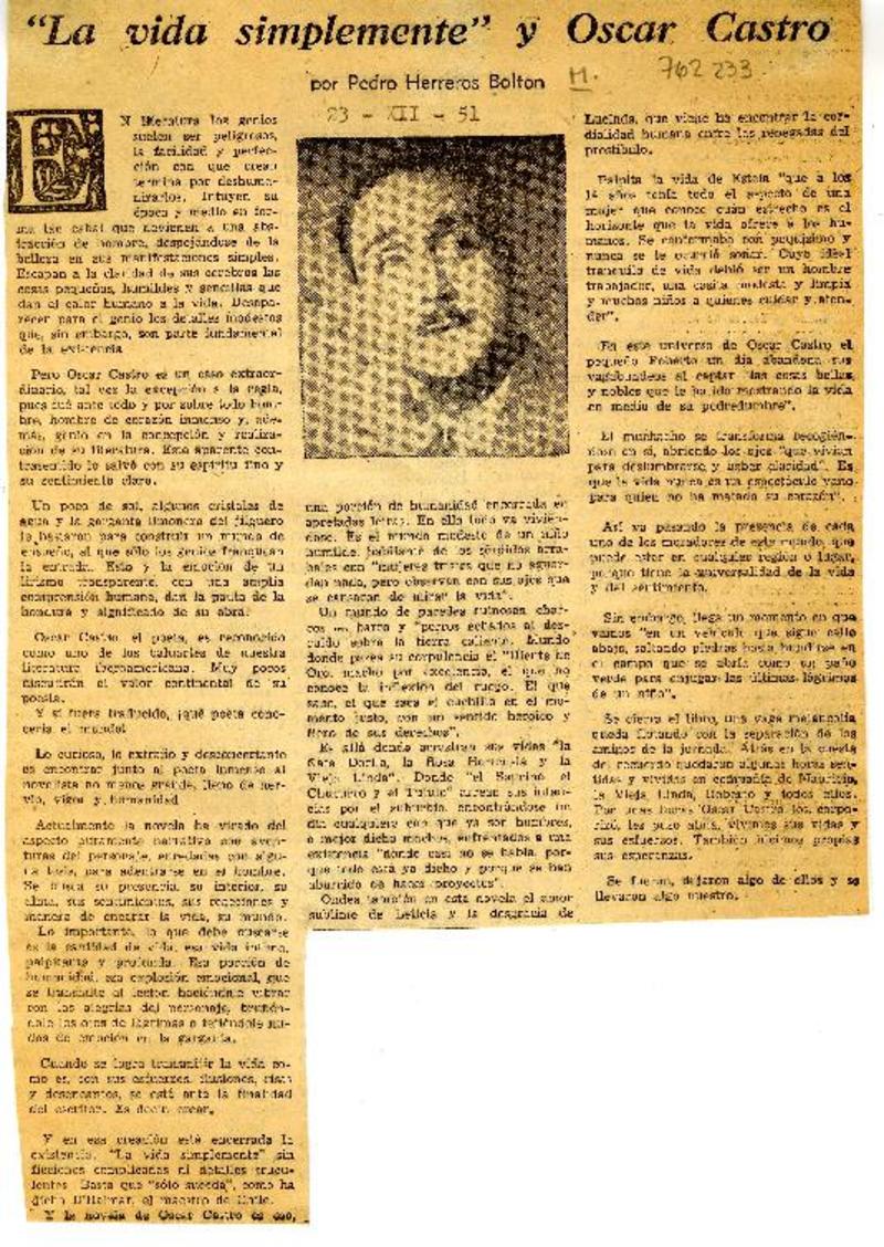 "La Vida simplemente" y Óscar Castro [artículo] Pedro Herreros Bolton.