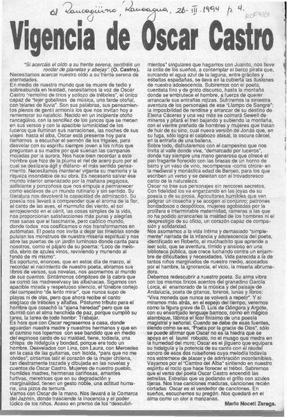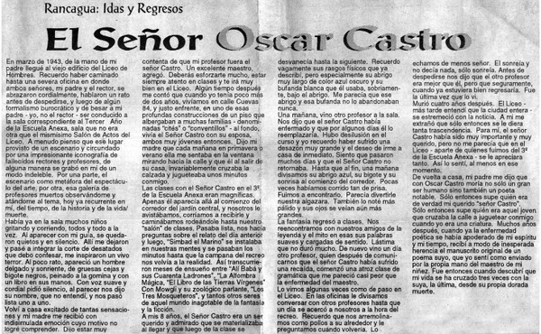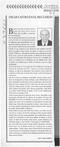 Recuerdo de Oscar Castro [artículo] Pablo Cassi.