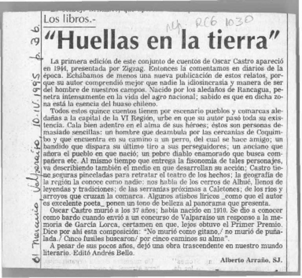 "Huellas en la tierra" [artículo] Alberto Arraño.