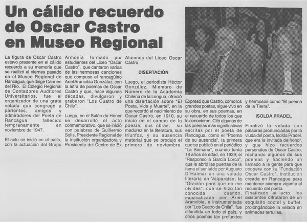 Pradel, Isolda - Oscar Castro en Rancagua - Castro, Óscar