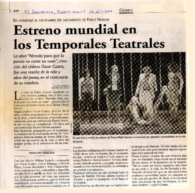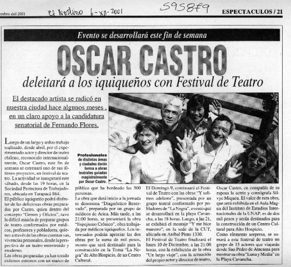 Atentados de Nueva York inspiran nuevo montaje de Oscar Castro [artículo] Cecilia Hertrampf