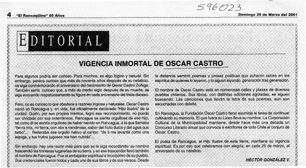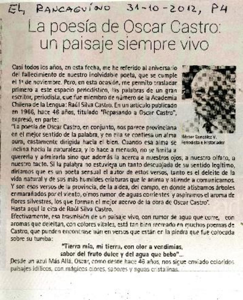 Vigencia inmortal de Oscar Castro [artículo] Héctor González V.