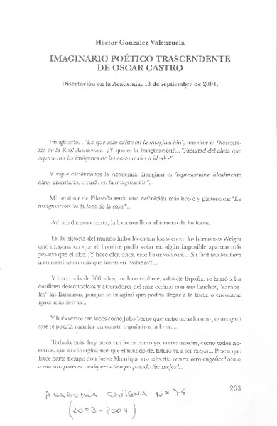 A 90 años del natalicio de Oscar Castro [artículo] Héctor González V.