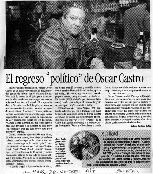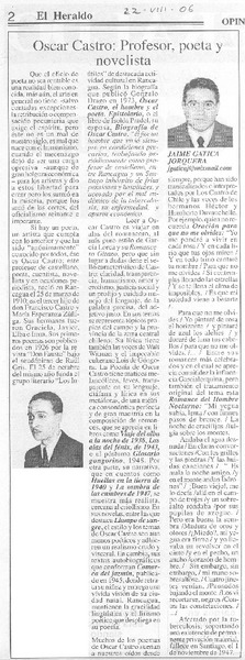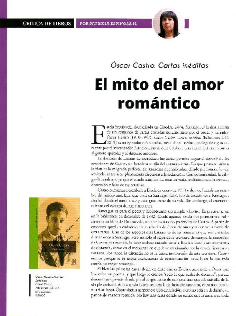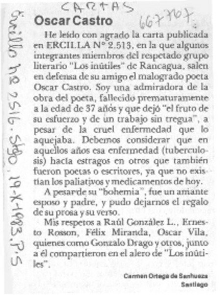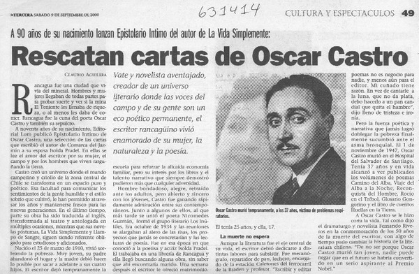 Rescatan cartas de Oscar Castro [artículo] Claudia Aguilera