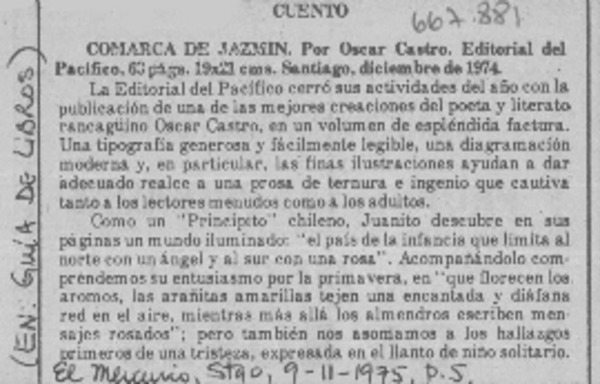 Autores chilenos - Castro, Óscar - Comarca del jazmín