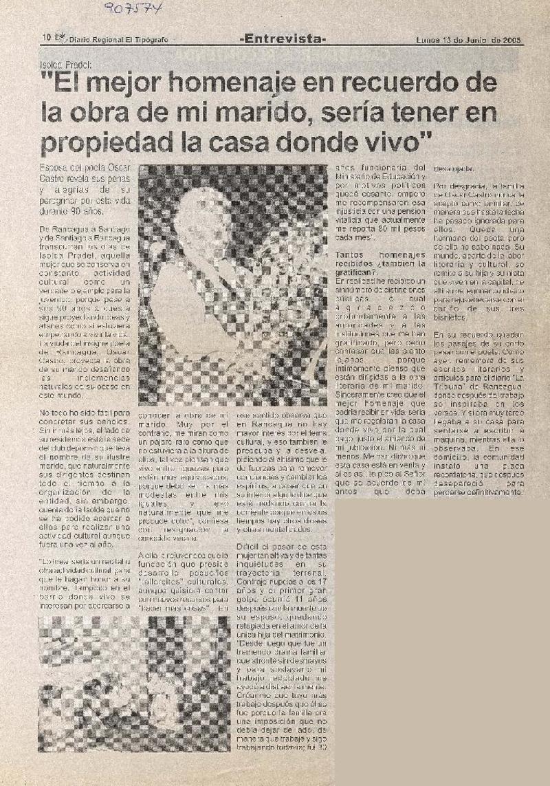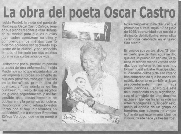 Apareció libro de Isolda Pradel sobre la vida de Oscar Castro [artículo] E. U.